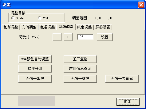 VAG顏色自動調(diào)整:當(dāng)在VGA狀態(tài)時抓到的值不正確,顏色顯示不正常時,點擊該按鈕重新抓取,可重復(fù)多次點擊(注:在拼接單元單屏顯示時使用)。