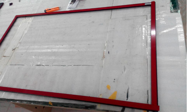 2、安裝過程中,貼雙面膠和拿框的時候必須做到輕拿請放,防止紅外屏扭曲變形,影響安裝之后的觸摸效果;